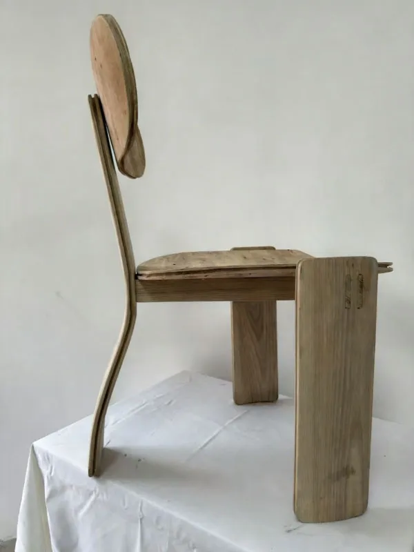 Carefully selected mixed hardwoods are used for the seat and backrest, chosen for their durability and unique, organic grain variations. Each piece retains natural knots and textures, ensuring no two chairs are identical.